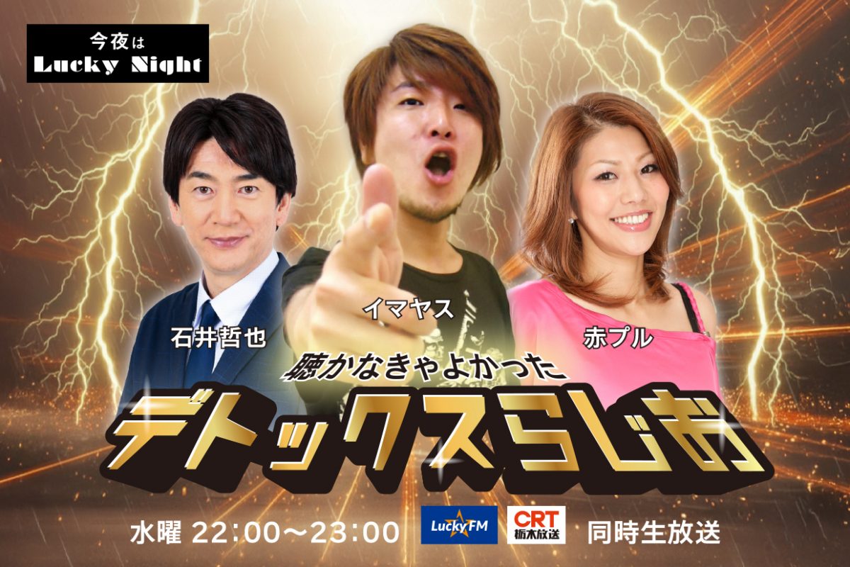 NEWS 最新情報 2025.12.22 OTHERS 【イマヤス】LuckyFM・CRT栃木放送で新番組スタート! 2025年12月24日〜LuckyFMとCRT栃木放送で同時生放送!新番組「今夜はLuckyNight 石井・イマヤス・赤プル 聴かなきゃよかった デトックスラジオ」が放送スタート!【イマヤス】がレギュラー出演します。【番組名】今夜はLuckyNight〜石井・イマヤス・赤プル 聴かなきゃよかった デトックスラジオ〜【放送日】毎週水曜 22:00〜23:00 【放送局】LuckyFM ・CRT栃木放送 2局同時生放送【出演】石井哲也 / イマヤス / 赤プル 共有:FacebookX 最新情報一覧に戻る